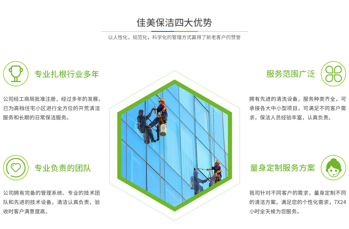 - 马鞍山市佳美保洁服务有限公司是一家经工商部门批准,具有法人资格专业清洗,马鞍山保洁服务的公司,自创办以来,一直致力于企业,家庭,宾馆,学校,别墅,酒店,商厦,公共设施等场所提供科学的日常保洁和清洁保护的服务公司,有着丰富的管理服务和保洁经验...